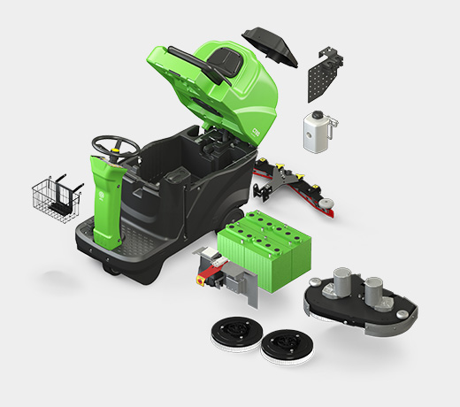The small size of the CT81 and its turning radius of 185cm allow it to work even in very tight spaces. The ergonomics of the machine and seat ensure operator comfort. Thanks to these features, this professional scrubber suits many floor types including concrete, resin, and porcelain tiles.