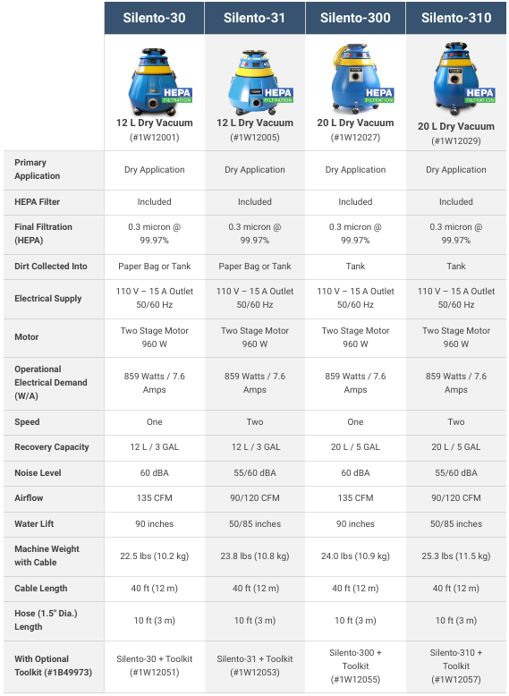 The Silento-30 has a triple-filter system that meets all HEPA requirements, making it ideal for hospitals, daycares, schools, or other places where good air quality and quiet sound are needed. The vacuum is extremely stable and maneuverable, thanks to its modified triangular shape and heavy-duty casters.